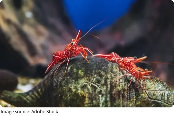 This shrimp is found across the Indo-Pacific, where it lives in shallow rocky reef zones, caves, crevices, and shaded spaces beneath overhangs. It prefers sheltered areas with plenty of cover rather than bright, open water. In nature, it is often seen in groups, tucked into narrow spaces during the day and becoming more active when conditions are dimmer. These habits make it well suited to reef environments filled with small hiding places and textured surfaces.