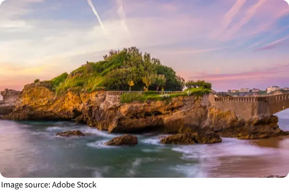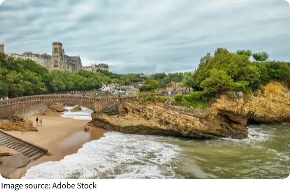This bridge provides breathtaking ocean views and a close feel of the Atlantic’s energy, with dramatic waves below and panoramic views of Biarritz’s beaches and lighthouse on the horizon. Walking here makes us feel connected to both the sea and the city in a memorable way.