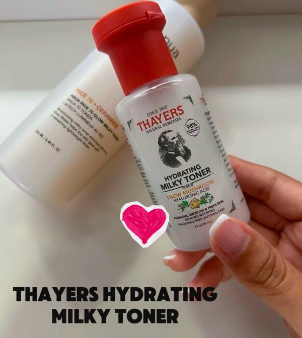 For a more wallet‑friendly pick, the Thayers hydrating milky toner (travel size) surprises me every time. It leaves my skin visibly hydrated and smoother, and honestly, I prefer it to their classic toner formula.